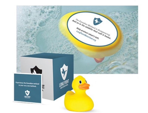 We weighted the duckies so that as soon as they were placed in water they’d immediately flip upside down – revealing our message.